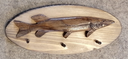 Сделал три новые ключницы в подарок рыбаку. Подобные уже были (см. по ссылке), но там все рыбки были из березы. Здесь же рыбешек вырезал из дубовых обрезков, которые мне не так давно подарил один хороший знакомый.